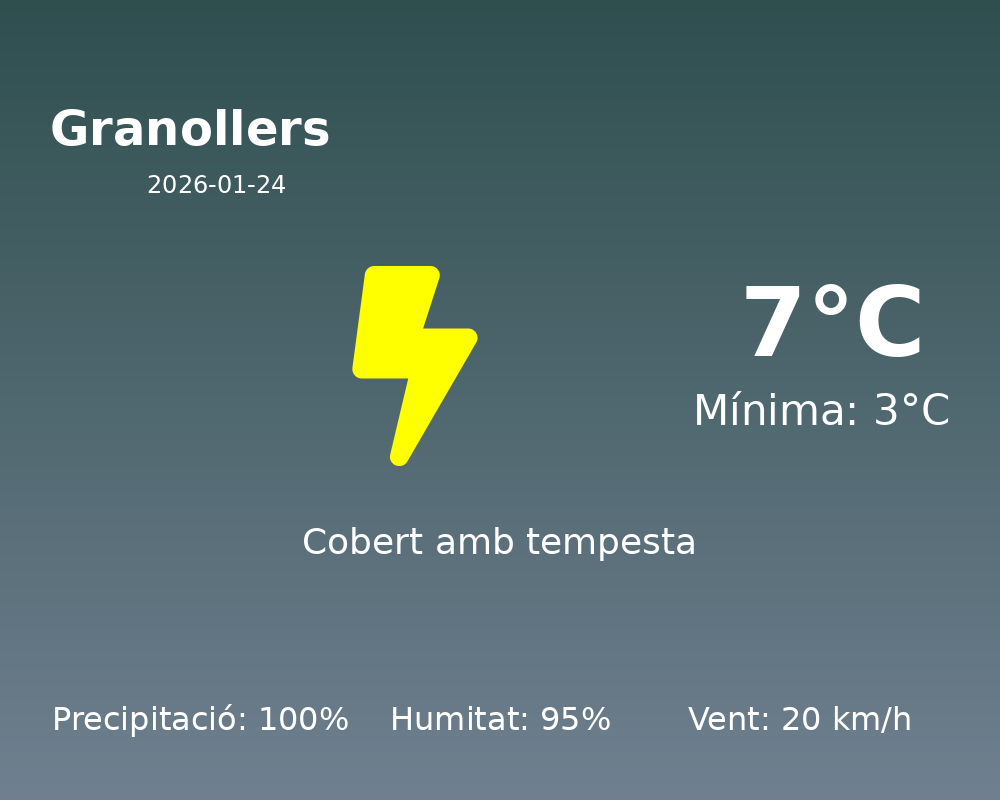 Avui, Granollers es prepara per a un dia força humit i amb temperatures que oscil·laran entre els 3°C de mínima i els 7°C de màxima. Les condicions meteorològiques suggereixen que l’hivern es manté ferm, i per tant, caldrà abrigar-se adequadament.