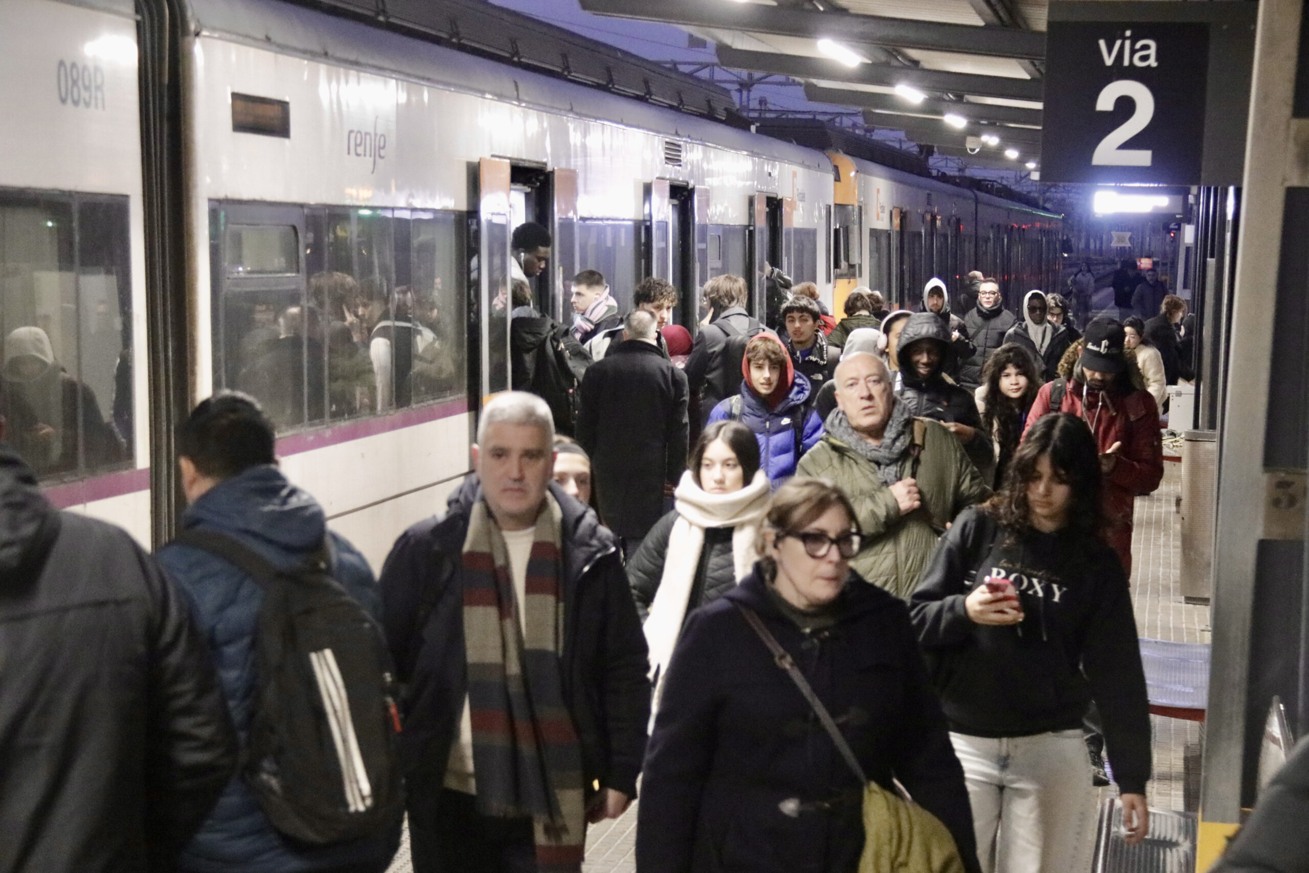 ACN Mataró – L’estació de tren de Mataró, de la línia R1, ha tornat aquest dilluns al brogit habitual, previ a la darrera crisi que viu Rodalies i que encara cueja. Andanes plenes, corredisses per agafar un tren que s’escapa i embussos entre usuaris que entren i surten han tornat a monopolitzar l’escena a primera hora del matí. “Avui ja ha començat a funcionar i esperem arribar bé”, prega la Jana mentre espera el tren. Els usuaris asseguren que els darrers dies han viscut en un “caos” permanent, amb la supressió del trànsit ferroviari i la gestió del dia a dia amb els serveis alternatius per carretera. “Ha estat el pitjor que m’ha passat”, recorda l’Ana María. Aquests dies, els desplaçaments en transport públic, afegeix en David, han estat “un suplici”.