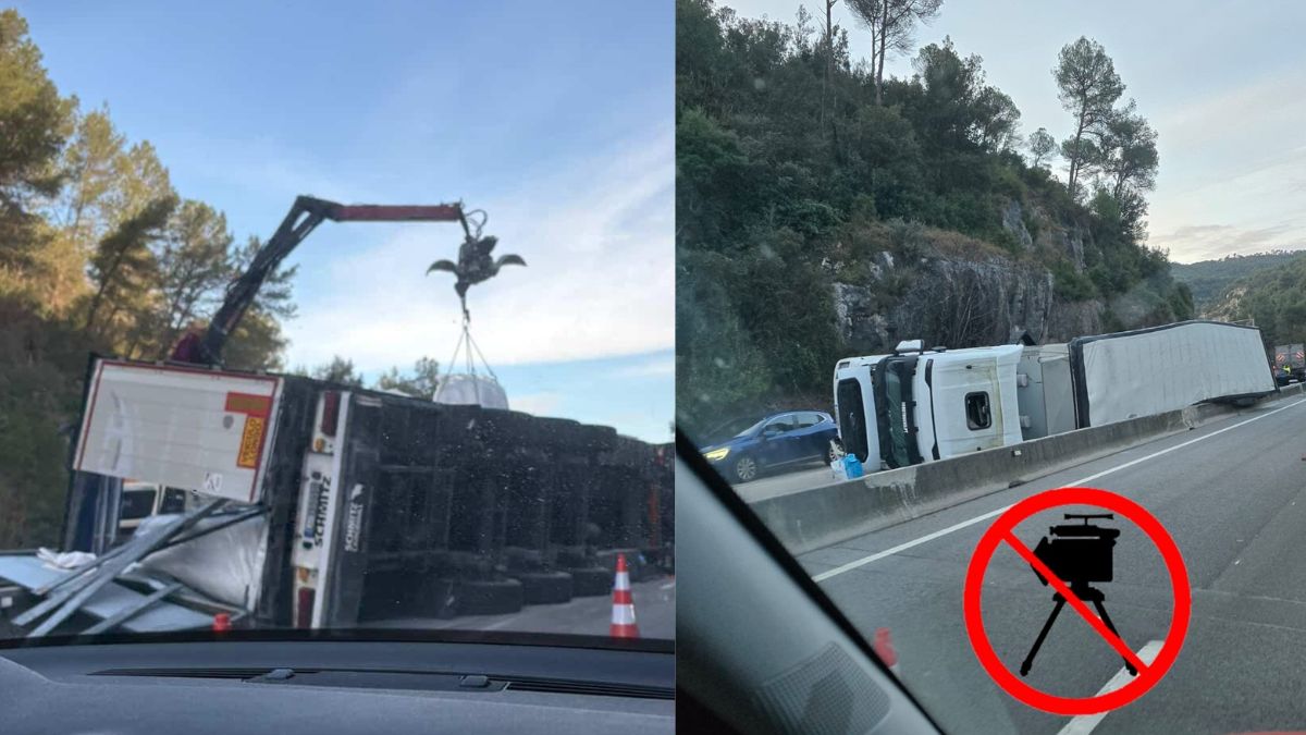 Segons les imatges difoses a les xarxes socials per un compte d’avisos de trànsit, el sinistre es va produir durant la tarda i va obligar a activar un ampli dispositiu per senyalitzar la via i garantir la seguretat de la resta de conductors. En les fotografies i vídeos compartits es pot observar el vehicle pesant tombat lateralment, amb la càrrega desplaçada i diversos cons delimitant la zona afectada.
